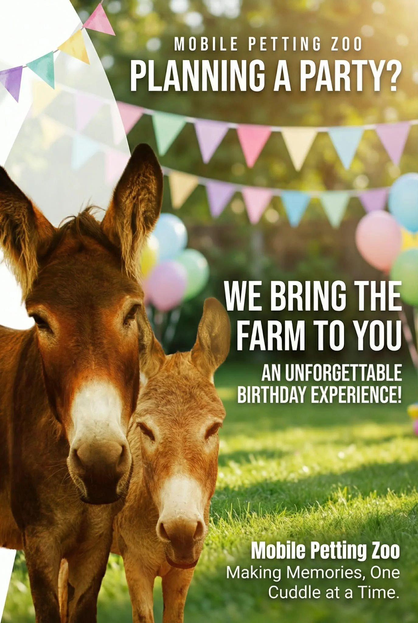 Mobile Petting Zoo is a compact mobile zoo that brings our lovable farm friends to your doorstep. We are passionate about sharing the joy and wonder of farm animals with people of all ages. Our mobile petting zoo is perfect for birthday parties, festivals, grand openings, school programs, and more.